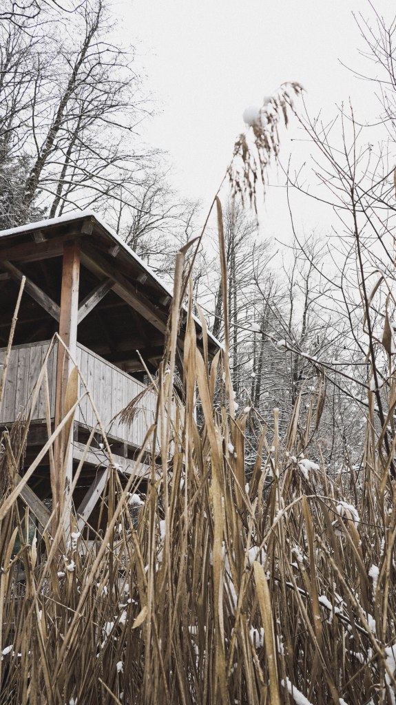 Ich bin diesen See jedoch nicht im Sommer, sondern zur Weihnachtszeit gegangen und dort hält er eine ganz andere Überraschung für einen bereit. Nicht nur, dass dieser See im Winter superschnell einfriert, was zum Eisstockschießen und Schlittschuhlaufen einlädt, sondern es stehen auch an der Weihnachtszeit superschön geschmückte Bäume auf dem Erlebnispfad.