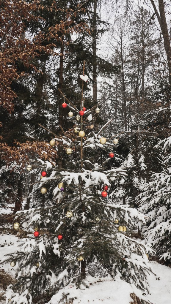 Auf der gesamten Strecke des Erlebnispfades wurden vereinzelt immer mal wieder kleine Tannenbäume schön weihnachtlich geschmückt, was echt ein besonderes Highlight im Winter und zur Weihnachtszeit ist, gerade wenn viel Schnee liegt.