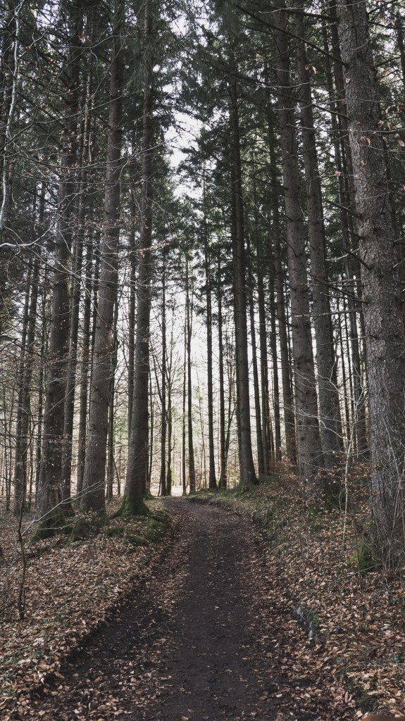 Die Aussichtsplattform passiert, geht es mit der dritten Etappe in Richtung Griessee weiter. Der Weg an sich ist super ausgeschildert, sodass man diesen nicht verfehlen kann. Der Forstweg führt hier durch einen Wald hindurch, bis man wieder auf eine Wiese kommt und am Waldrand entlang geht. Hier geht es nach ca. 50 Meter scharf links wieder in den Wald hinein und auf einem schmalen Weg nach unten weiter.